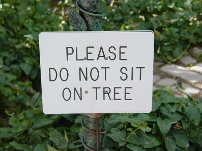 So why should a person “Not Sit On Tree”? We’ve been thinking this over thoroughly and we’ve come to realise there are many, MANY reasons why sitting on tree would be horrendously dangerous for human being and tree alike. For a start there’s always the threat of it being a bit windy, in which case if you sat yourself down you’d more than likely be whipped up by a mini-hurricane and dumped several hundred miles away from where you need to be. Always annoying that, innit?
